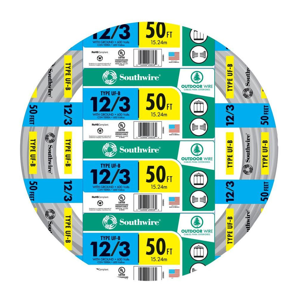 Southwire 12/3 UF-B Wire, Underground Feeder and Direct Earth Burial Cable