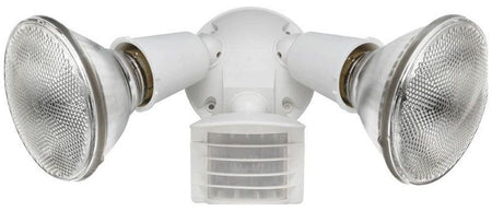 300 Watt Switching Capacity; Luminator Sensor with Two Weatherproof, Corrosion-Proof Floodlights and Round Mounting Plate; Pre-Wired for Easy Installation; Manual Override; Fully Adjustable Positioning; Tough, Vandal Resistant Lens and Grill; Buy American Act Compliance