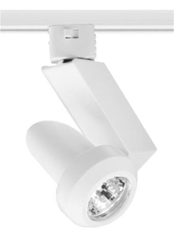 Juno Trac-Master T809-Series slant, step cylinder fixtures feature an angular design that cleverly disguises the integral electronic transformer. The slanted transformer permits 90-degree vertical aiming in both directions and 358-degrees horizontal rotation. MR16 lamps provide tight beam control for dramatic accent lighting effects.