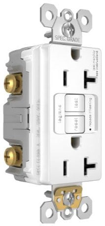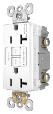GFCI receptacles from the radiant Collection self-test automatically every three seconds to ensure reliable protection from shock due to ground fault occurrences. Meeting National Electrical Code requirements for ground fault protection, GFCI receptacles make it easier to recognize and fix trips right where they happen – no more confusion at the breaker box. Maximize safety, in style, with GFCI protection featuring the sleek, clean lines of radiant. GFCI protection is required by code in bathrooms, kitchens, garages, basements, outdoor areas, and for any other outlets found within six feet of a sink or water source. GFCI outlets should always be used when replacing existing GFCI outlets during renovation. Made exclusively for use with screwless Wall Plates from the radiant Collection, sold separately. Spec-Grade devices are engineered to meet federal specifications for use in commercial installations.
