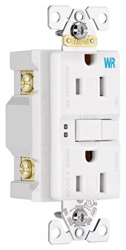 Eaton's Ground Fault Circuit Interrupter (GFCI) receptacles are circuit interrupters designed to recognize a ground fault in your wiring and immediately break the flow of electricity, thus protecting you from electrical shock. Further, they prevent resetting if, once tripped, the ground fault renders the device no longer functional. Eaton GFCIs are tested to the highest standards and provide dependable, state-of-the-art protection suitable for residential, commercial, and industrial settings, including homes, offices, hospitals, schools, and even outdoor applications. When combined with Eaton’s AFCI technology, Eaton's ground fault circuit interrupter receptacles provide fire and electrical safety in one device (AF/GF), and are also available in breakers.