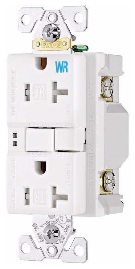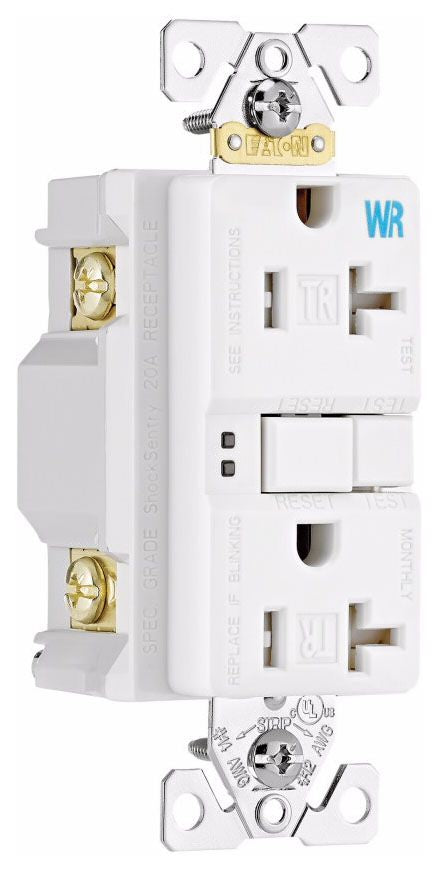 Eaton's Ground Fault Circuit Interrupter (GFCI) receptacles are circuit interrupters designed to recognize a ground fault in your wiring and immediately break the flow of electricity, thus protecting you from electrical shock. Further, they prevent resetting if, once tripped, the ground fault renders the device no longer functional. Eaton GFCIs are tested to the highest standards and provide dependable, state-of-the-art protection suitable for residential, commercial, and industrial settings, including homes, offices, hospitals, schools, and even outdoor applications. When combined with Eaton’s AFCI technology, Eaton's ground fault circuit interrupter receptacles provide fire and electrical safety in one device (AF/GF), and are also available in breakers.