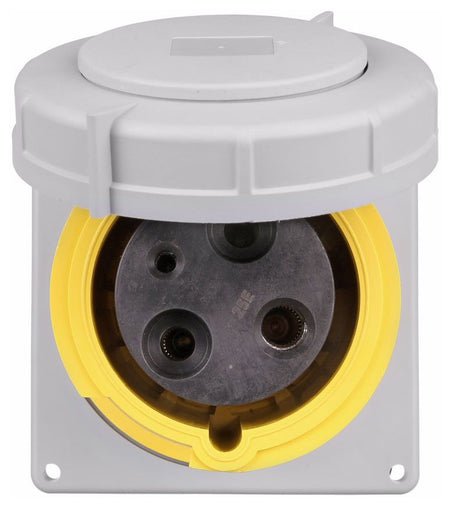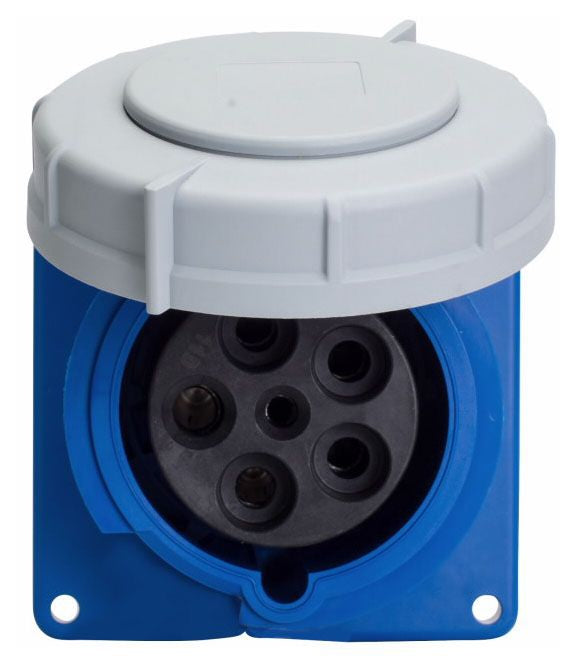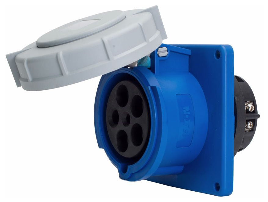 Spring Loaded Self Closing Cap with Silicone Gasket Protects Contacts When Not in Use; Rugged Materials Selected for Use in Wet Locations; Provides Corrosion Resistance; Standard Mounting Footprints and Blind Holes Provide Interchangeability with Major Brands; Individual Silicone Sealing Grommets with Cord Diameter Range Makes for Faster, Easier Assembly; Impact Resistant Thermoplastic Contact Carrier Provides Superior Electrical Insulation; Nickel Plated Contacts with Self Cleaning Field Proven Pressure Bands for Smooth Pin Insertion, Low Heat Rise, Corrosion Resistance and Quality Electrical Performance