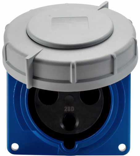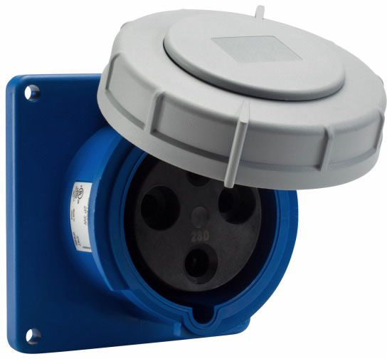 Mechanical Cord Clamp with Silicone Rubber Grommet Seal and Locking Screw Ensures a Positive and Water Tight Strain Relief System; Tri-Combo Cord Grip Screws for Convenience; Durable Impact Resistant Thermoplastic Body; Color-Coded Front Housing for Easy and Accurate Identification of Voltages; Oversized Grounding Pin Assures Mating Only with Oversized Female Grounding Sleeve; Staggered Contact to Ensure Ground Makes First and Breaks Last; Engineered Thermoplastic Material Improves Cold Impact Performance; Spring-Loaded Self-Closing Cap with Silicone Rubber Gasket Protects Contacts When Not in Use; Rugged Materials Selected for Use in Wet Locations; Provides Corrosion Resistance; Standard Mounting Footprints and Blind Holes Provide Interchangeability with Major Brands; Nickel Plated Pins Offer Long Life Corrosion Protection; Pins Fully Shrouded for Mechanical Protection; Threaded Cable Entry Provides Efficient Means of Attaching Flexible Conduit or Wire Mesh Grips; Tapered Wiring Pockets to Ease Insertion of Stranded Wire; Deep Pockets with Clear Markings Keep Bare Conductors Isolated