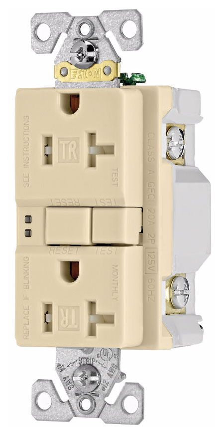 Eaton's Ground Fault Circuit Interrupter (GFCI) receptacles are circuit interrupters designed to recognize a ground fault in your wiring and immediately break the flow of electricity, thus protecting you from electrical shock. Further, they prevent resetting if, once tripped, the ground fault renders the device no longer functional. Eaton GFCIs are tested to the highest standards and provide dependable, state-of-the-art protection suitable for residential, commercial, and industrial settings, including homes, offices, hospitals, schools, and even outdoor applications. When combined with Eaton’s AFCI technology, Eaton's ground fault circuit interrupter receptacles provide fire and electrical safety in one device (AF/GF), and are also available in breakers.