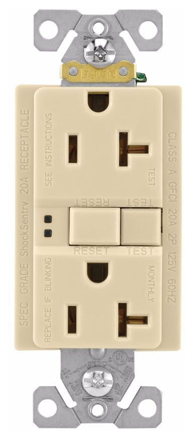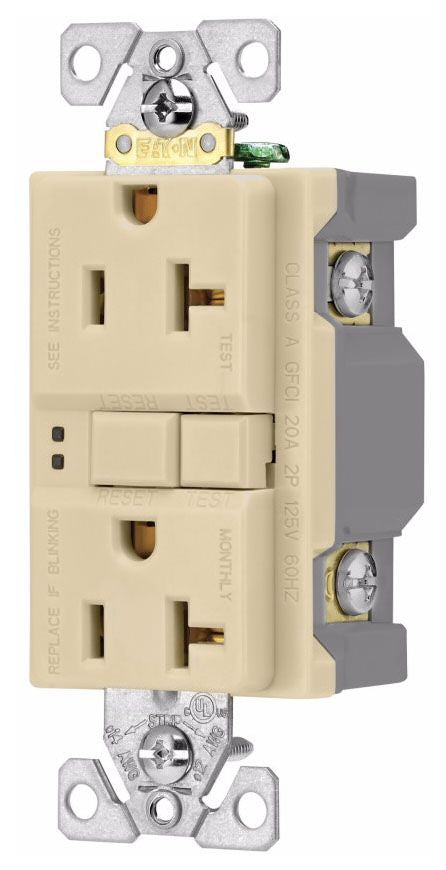 Meets and Exceeds 10 Kiloamp Short Circuit Testing; Performs Periodic Self Tests to Ensure Integrity of GFCI Protection If No Ground-Fault Protection is Detected, the Device will Trip, will Not Reset and the Status Indicator Light will Glow Amber; Tapered Back Wire Openings Handle Multiple Wire Sizes and Types for Applications up to 10 AWG Solid or Stranded Wire; When Downstream Receptacles are Wired from Load Side, a 20 Amp Feed-Through Rating Offers Full Protection; Test and Reset Buttons are Color Matched to Provide Superior Aesthetics; Longer, Wider Bridge Strap Provides 40% More Contact Area with Wallboard, Virtually Eliminating Floating Installations; Exclusive Built-In Wire Stripper Provides Fast Stripping of Wire without Tools; Line-Load Miswiring Protection GFCI will Not Provide Power Downstream when Wired Incorrectly; Tri-Combo Head Terminal and Mounting Screws