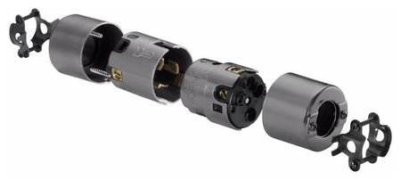 Deep Tapered Wire Wells Accept up to #4 AWG UL Wire Key for Long Cable Runs; Glass-Filled Nylon Body for Superior Strength and Heat Performance; Single Piece Heavy-Duty Plated Mounting Strap; Stainless Steel Tri-Combo Assembly Screws; Receptacles Utilize Rugged, Single Piece Plated Mounting Strap for Corrosion Resistance; Primary Applications are Temp Power, Generators,Heavy Equipment; NAFTA Compliant; RoHS Compliant