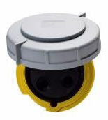Mechanical Cord Clamp with Silicone Rubber Grommet Seal and Locking Screw Ensures a Positive and Water Tight Strain Relief System; Tri-Combo Cord Grip Screws for Convenience; Durable Impact Resistant Thermoplastic Body; Color-Coded Front Housing for Easy and Accurate Identification of Voltages; Oversized Grounding Pin Assures Mating Only with Oversized Female Grounding Sleeve; Staggered Contact to Ensure Ground Makes First and Breaks Last; Engineered Thermoplastic Material Improves Cold Impact Performance; Spring-Loaded Self-Closing Cap with Silicone Rubber Gasket Protects Contacts When Not in Use; Rugged Materials Selected for Use in Wet Locations; Provides Corrosion Resistance; Nickel Plated Pins Offer Long Life Corrosion Protection; Pins Fully Shrouded for Mechanical Protection; Threaded Cable Entry Provides Efficient Means of Attaching Flexible Conduit or Wire Mesh Grips; Tapered Wiring Pockets to Ease Insertion of Stranded Wire; Deep Pockets with Clear Markings Keep Bare Conductors Isolated; Allowable Wire Size 10 to 2 AWG