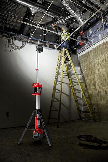 25% More Light, All Day Operation. The M18 ROCKET Dual Power Tower Light is providing more light on the job with 2500 lumens of TRUEVIEW High Definition Output. All while having the capability being Dual Power, powered by M18 or extension cord. The light head can be extended from 4 to 7 Foot to light overhead work or minimize shadows when casting light downward. Capable of filling large areas with light, it provides 2500 lumens in its high mode, 1, 100 in medium and 700 in low and it can run for up to 4, 8 or 12 hours with an M18 REDLITHIUM XC 5.0 Battery Pack. it uses TRUEVIEW High Definition Output providing neutral white color and a high color rendering index paired with a Milwaukee designed reflector to produce an even beam pattern. Its reinforced legs are impact resistant and its low center of gravity provides a stable base. The light head is protected by an impact-resistant lens and bezel and it nests into a protective shroud for secure transport and storage. Its LEDs never need to be replaced and are backed by a limited lifetime warranty. The combination of these technologies offers professionals the highest quality LED lighting solution, on or off the jobsite.
