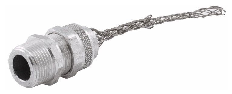 Deluxe Cord Grips are Woven of Stainless Steel Mesh with an Aluminum Body for Corrosion Resistance; They are Offered in Single/Double Weave Construction to help Absorb Direct Pull, to Resist Flexing and Binding and to Eliminate Strain; Prevents Pull Tension Reducing Cable Pullout and System Downtime; Eliminates Direct Tension from Terminals Removing Strain from Critical Electrical Connection; For use where Cable or Cord is Exposed to Moisture or Where Frequent Washdown Occurs. Ideal for Food Processing Equipment, Hand tools, Pendant Stations, Pumps, Compressors and Arrow Hart Pin and Sleeve Plugs and Connectors; NAFTA Compliant