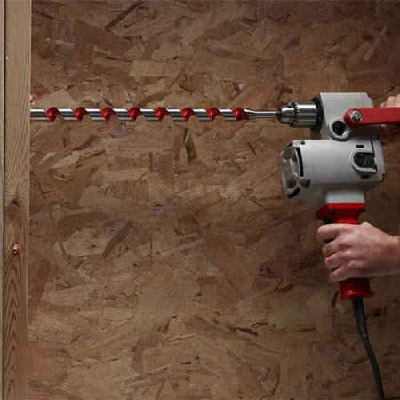 The Milwaukee 7/8" x 18" Ship Auger Bit drills through up to 2X the nails of competitive auger bits without needing resharpening. Drill into clean or nail-embedded wood with confidence when installing Romex wire, Pex water lines, rebar, bolts and rope in piers, playground equipment and landscaping. The flutes are wider for maximum chip removal, even in deep holes. The polished and coated flute finish means chips won't stick to the bit, even when drilling in material that contains sap or glue. The through-center cutting design creates a more solid striking point against nails compared to the competitions' ahead-of-center and behind-center designs. The longer shaft length makes it easy to drill deeper or overhead without an extension.
