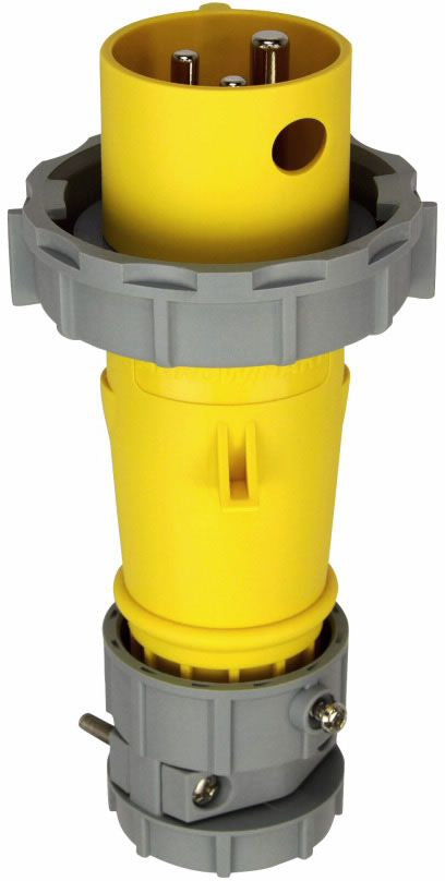 Mechanical Cord Clamp with Silicone Rubber Grommet Seal and Locking Screw Ensures a Positive and Water Tight Strain Relief System; Tri-Combo Cord Grip Screws for Convenience; Durable Impact Resistant Thermoplastic Body; Color-Coded Front Housing for Easy and Accurate Identification of Voltages; Oversized Grounding Pin Assures Mating Only with Oversized Female Grounding Sleeve; Staggered Contact to Ensure Ground Makes First and Breaks Last; Engineered Thermoplastic Material Improves Cold Impact Performance; Spring-Loaded Self-Closing Cap with Silicone Rubber Gasket Protects Contacts When Not in Use; Rugged Materials Selected for Use in Wet Locations; Provides Corrosion Resistance; Nickel Plated Pins Offer Long Life Corrosion Protection; Pins Fully Shrouded for Mechanical Protection; Threaded Cable Entry Provides Efficient Means of Attaching Flexible Conduit or Wire Mesh Grips; Tapered Wiring Pockets to Ease Insertion of Stranded Wire; Deep Pockets with Clear Markings Keep Bare Conductors Isolated; Allowable Wire Size 12 to 10 AWG