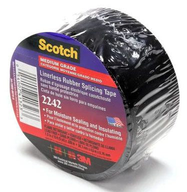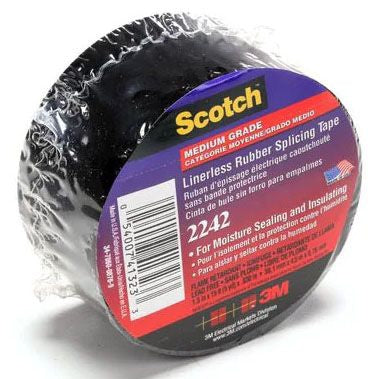 Scotch® Tape 2242 is a linerless 30 mil thick, general purpose, electrical rubber tape that's suitable for bus bar insulation and moisture sealing of cable ends. The high voltage, flame retardant tape ensures excellent tacking with its self-fusing, ethylene propylene rubber resin adhesive. Scotch® Tape 2242 is designed for terminating and splicing wires and cables and maintains stability in temperatures up to 194 Deg F (90 Deg C). This weather resistant tape has excellent physical and electrical properties and provides a moisture seal and void free buildups. The highly conformable tape has a flexible, rubber backing that optimally resists UV rays, heat and flame. ASTM Approved and RoHS 2011/65/EU Compliant.