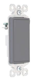 Smooth Paddle Action; High-Impact Resistant Thermoplastic Construction; Side Wire Terminal Screws #12 : #14 AWG Solid Wire: Push Wire Terminals Accept #14 AWG Solid Cooper Wire Only; Narrow Back Body Leaves More Room for Wires in the Electrical Box; Strap Eliminates Floating Installations and Imperfect Applications; Easy-Access Green Hex Head Ground Screw; Tri-Drive Ground, Terminal and Mounting Screw