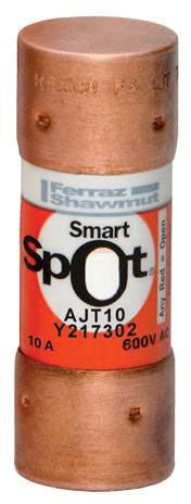 Amp-Trap 2000 AJT fuses provide non-indication as well as a SmartSpot visual open fuse indicator. With advanced material technology the AJT fuse provides IEC Type 2 No Damage protection to main, feeder and branch circuits, for all types of loads - yet, they require only half the mounting space needed for 600VAC Class RK fuses. AJT's time-delay characteristics are ideal for handling typical motor and transformer inrush currents, while also providing superior current-limiting ability.
