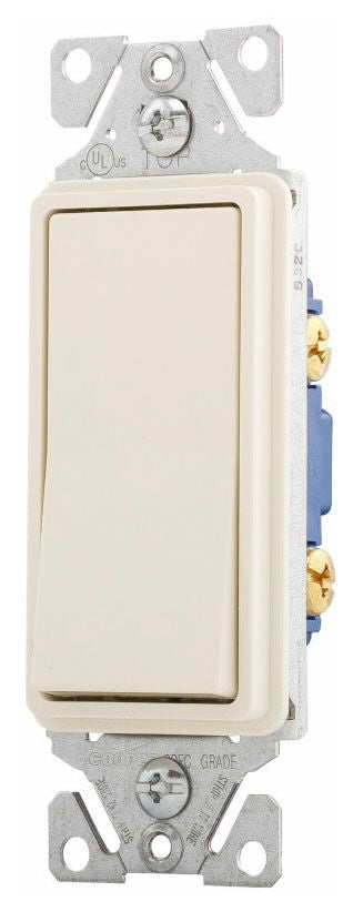 Thermoplastic Rocker, Top and Backbody are Virtually Unbreakable, Promising Years of Durable Performance; Ultrasonic Welding and Integrated Construction of the Strap and Body Provide Superior Integrity; Backwire Clamps on the Side Terminals Provide for Easy Installation of #12 and #14 AWG Wire; Push-In Terminals Accept #14 AWG Solid Wire; Stippled Ground Screw Terminal Standard; 120/277 Volt Ac Rating Ideal for Fluorescent Lighting Fixtures and a Broad Variety of Applications; Long, Broad Mounting Strap Virtually Eliminates Floating Installations; Patented Built-In Wire Stripper for #12 and #14 AWG Wire to Speed Installation; Tri-Combo Screws Accept Slotted, Phillips, and Robertson-Head Tools for Installation Flexibility; Lighted Switches Glow in Off Position; RoHS Compliant