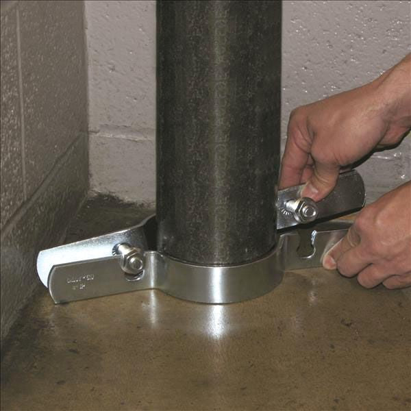 Recommended for Suspending Vertical Steel Pipe Riser; Slotted Holes Make Assembly Easy, Eliminating Loose Hardware; Serrated Flange Head Bolts Eliminate Need for Wrenches on Both Bolt and Nut