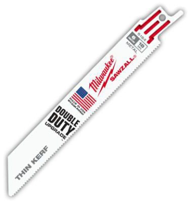 Thin Kerf metal-cutting blades with the Double Duty Upgrade feature a tooth form that is optimized for the longest life and increased speed. Tough Neck is engineered to protect against tang breakage and delivers the strongest Sawzall blade tang on the market. Maintaining a short profile and thin body, these blades are ideal for making fast, flexible cuts.