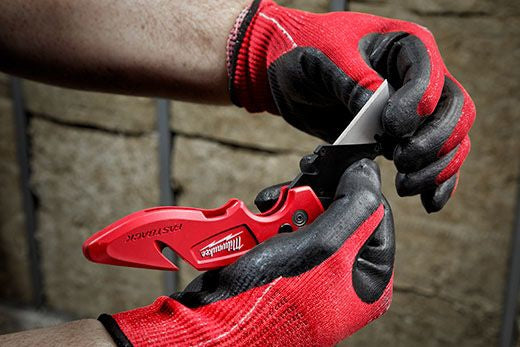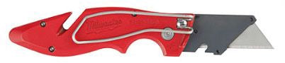 The Milwaukee FASTBACK Folding Utility Knife features Press and Flip for one-handed opening. The Milwaukee utility knife allows you to make quick, tool-free blade changes for maximum jobsite efficiency The utility knife has an all metal body, an integrated gut hook and wire stripper for increased versatility. The folding utility knife has a metal extension that prevents accidental blade removal and a wire belt clip.