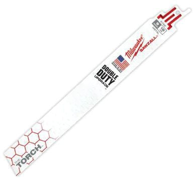 The Torch metal-cutting blades with the Double Duty Upgrade feature a tooth form optimized for the longest life and maximum durability. Tough Neck is engineered to protect against tang breakage and delivers the strongest Sawzall blade tang on the market. Grid Iron features a stamped honeycomb pattern throughout the body of the blade that greatly increases the rigidity of the blade, making it the stiffest metal cutting Sawzall blade on the market. These blades are ideal for making tough, straight cuts.