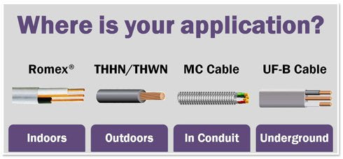 UF-B is an underground feeder and branch circuit wiring cable. It can be used as an underground feeder from an existing building to outdoor lighting fixtures, pumps, outbuildings and other equipment. Its applications are outlined in Article 340 NEC 2008 and NEC 2011. UF-B is rated at 600 volts. Although it is rated at a conductor temperature of 90ºC dry / wet, its ampacity is limited to 60ºC according to the NEC 2008 AND NEC 2011. UF-B may be directly buried or installed where exposed to sunlight. When used as an NM cable it must comply with the requirements in NEC 2008 and NEC 2011 Article 334.